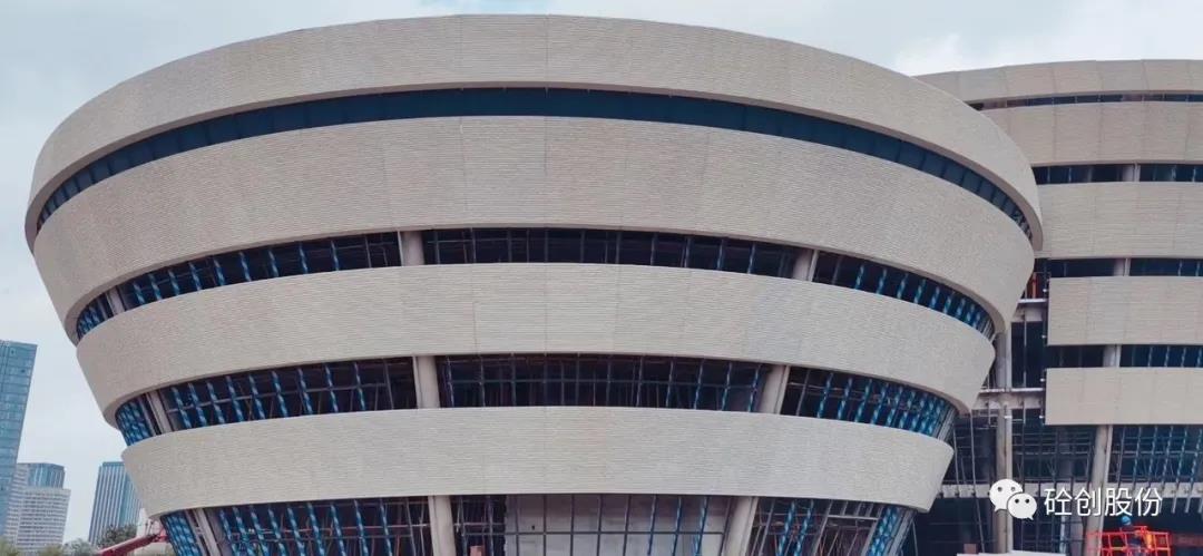 “砼創(chuàng)牌”UHPC幕墻材料,其性能非常的優(yōu)越。在生產(chǎn)過(guò)程中,很好的復(fù)制了模具的造型,實(shí)現(xiàn)精致細(xì)膩的表面肌理。松江區(qū)職工文化活動(dòng)中心其建筑造型設(shè)計(jì)獨(dú)特,是由3個(gè)巨大的“碗 ”連接組成,通過(guò)UHPC幕墻與玻璃幕墻的交錯(cuò),表現(xiàn)出古樸但又現(xiàn)代的個(gè)性,通過(guò)簡(jiǎn)單形體的組合創(chuàng)造出一種韻律美,給人對(duì)職工文化活動(dòng)的憧憬和向往!