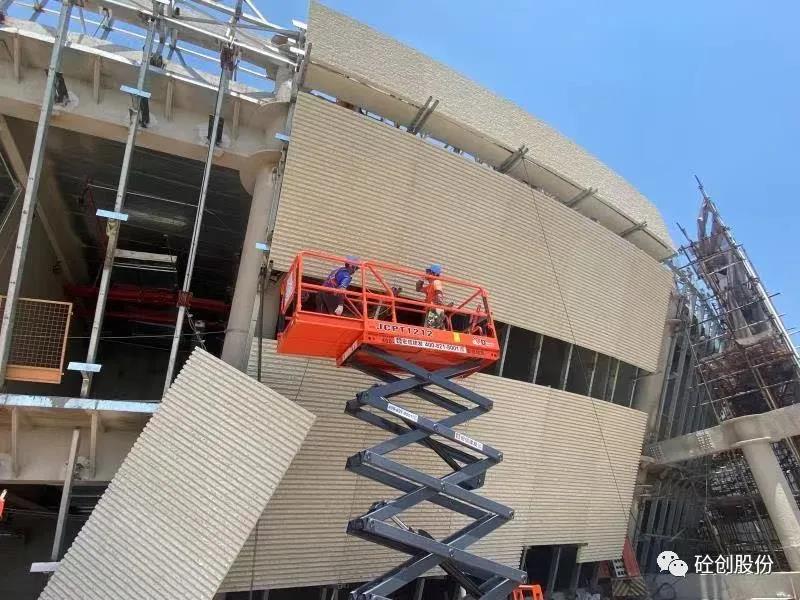自松江職工文化活動(dòng)中心UHPC幕墻建設(shè)開(kāi)工以來(lái),炎炎夏日的酷暑和反復(fù)來(lái)襲的疫情對(duì)現(xiàn)場(chǎng)進(jìn)度造成了不小的客觀影響,但砼創(chuàng)股份的項(xiàng)目施工團(tuán)隊(duì)全力以赴協(xié)調(diào),嚴(yán)控現(xiàn)場(chǎng)節(jié)點(diǎn),緊密跟蹤現(xiàn)場(chǎng)施工進(jìn)度,建筑工人們還是克服了各種考驗(yàn),通過(guò)連續(xù)的奮戰(zhàn),確保了工程進(jìn)度的順利推進(jìn)。